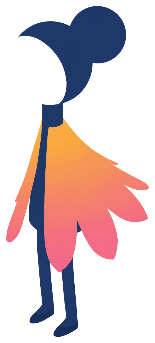 Ro is a woman with a blank, expressionless white face and a black bun as her hairstyle. She wears an orange dress-like coat, which shifts colors throughout the game. When completing a chapter and forming Geometry at a pedestal, she wears an orange turban.